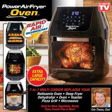 If you enjoy fried chicken, fried fish, fries, and onion rings, then an air-fryer is a kitchen essential must-have. The Power Air Fryer XL is a revolutionary, 7-in-1 multi-cooker which replaces your deep fryer, rotisserie, dehydrator, oven, toaster, pizza grill and microwave.